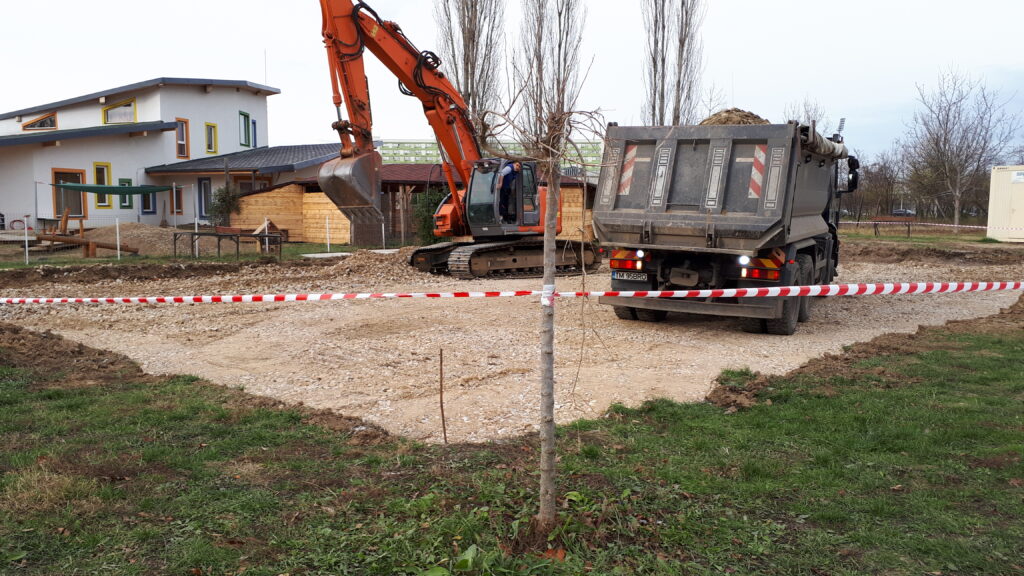 Destinația imobilului: Teren de sport cu panouri de basket – temporar: Fundație clădire modulară